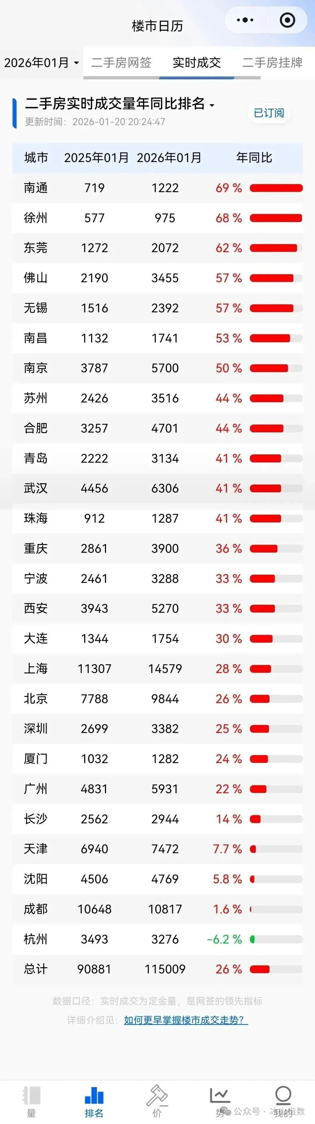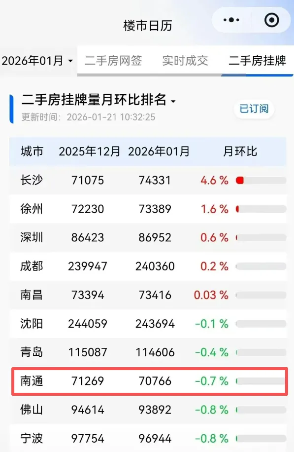 据冰山指数最新数据显示,2026年1月,南通二手房实时成交量同比飙升69%。