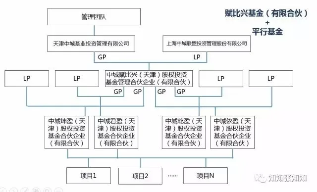 “赋比兴基金”作为GP与募集而来的各LP分别成立“中城乾盈基金”、“中城坤盈基金”、“中城君盈基金”和“中城侬盈基金”等平行基金。