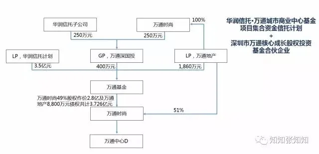 华润信托子公司与万通时尚成立"万通深国投"(400万元)作为GP,华润信托计划(3.5亿元)和万通地产(1,860万元)作为LP设立万通基金。