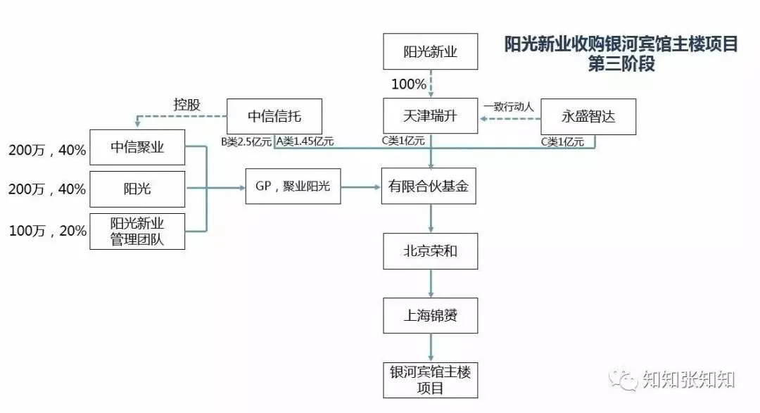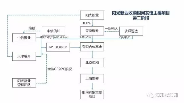 中信信托通过控股的中信聚业和阳光新业设立有限合伙,聚业阳光作为GP与阳光兴业控制的天津瑞升、中信信托和一直行动人永盛智达为LP设立有限合伙基金。