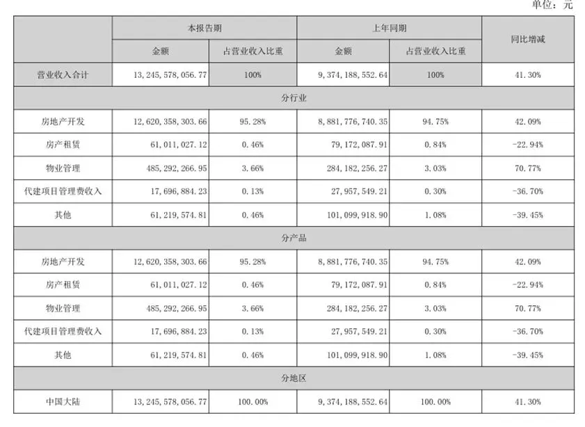 上半年总营收是132.46亿,其中物业收入4.85亿,房产租赁6101万,代建1769万,这里剔除房地产开发营收已经超过6.1亿。