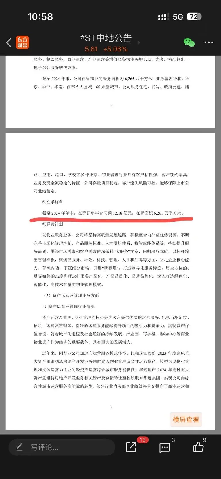 三季度报,年报,这些营收还在增长,因为新签约了很多物管,自持园区出租率也不错,三季度也说了,
