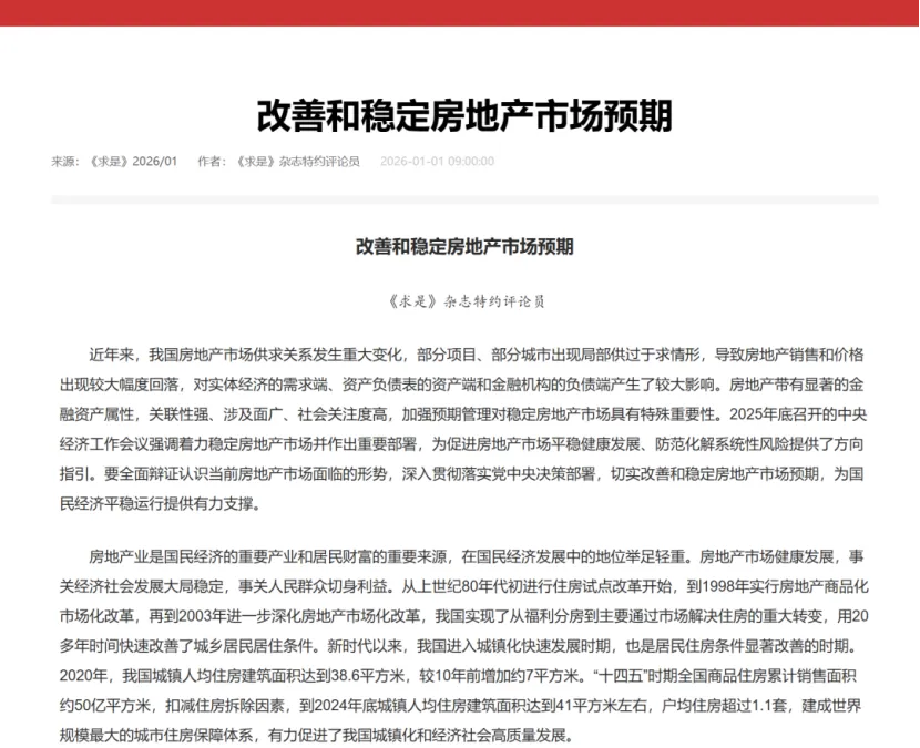 今天想和大家深度聊一聊最近《求是》杂志一篇非常重要的文章,主题是“改善和稳定房地产市场预期”