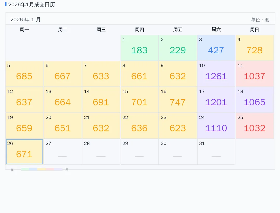 2026年01月成交日历