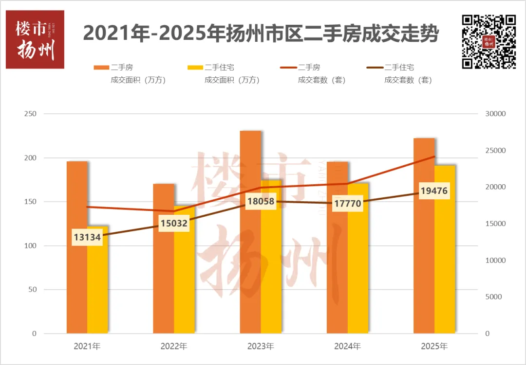 随着房子回归居住属性,在扬州,一个很明显的趋势是:刚需奔二手,改善趋新房。2022年-2025年,扬州市区新房住宅成交一直在1万出头,每年卖个1万+套、1.1万+套。反观二手,2022年扬州市区二手住宅成交1.5万+套,2023年1.8万+套,2024年1.7万+套,2025年1.9万+套。两厢数据的对比,足以说明扬州刚需对于“低价”房源的追捧。这个低价,不仅是低单价,更是低总价。制约刚需购买的门槛,主要是总价。2025年扬州二手房市场出现的一批总价三四十万的房子,让很多原先只能租房住的居民,实现了安家扬州的置业梦想。“住有所居”只是第一步,完成第一步之后,只要有条件,买房人总会迈出第二步伐:“住有优居”。根据2023年年底扬州官方透露的数据,扬州全市城镇居民人均住房建筑面积达到53.7㎡。这个数据意味着,扬州市场整体其实已经不缺房子了,扬州房地产已经从大开发时代,转向了存量时代。这也意味着,虽然短期内,低低低低总价的房子在扬州还有市场,但这些房子迟早会被淘汰、被抛弃。传统的购房逻辑已经被打破。站在长远来看,地段+资源+产品能一步到位的房子,才是能扛过时代风暴的首选。关注扬州楼市,解析扬州城市发展方向,搭建高效精准的地产交流平台。感兴趣的朋友欢迎加入楼市扬州交流群!(扫描下方二维码,邀请进群)