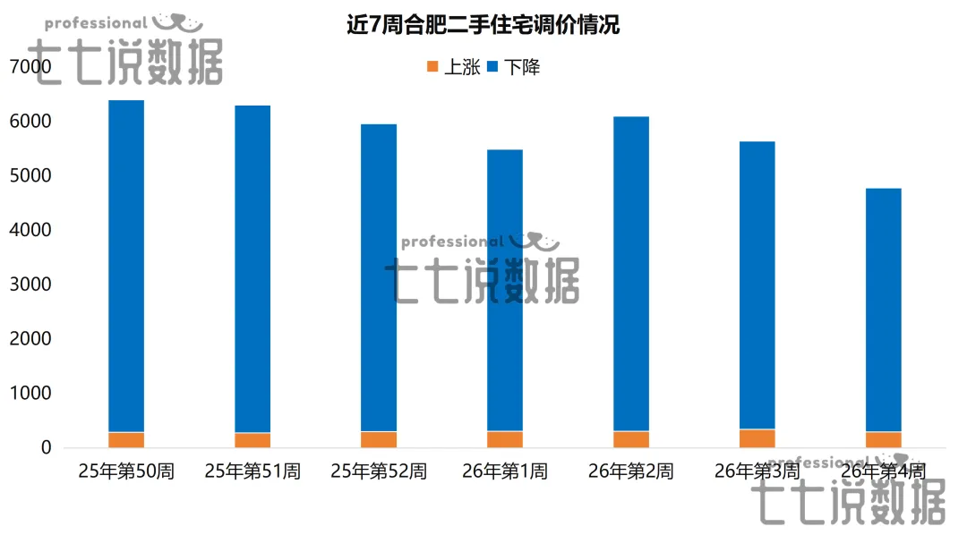 根据七七说数据显示,1月份第1周,合肥二手房价格上涨的房源有306套;
