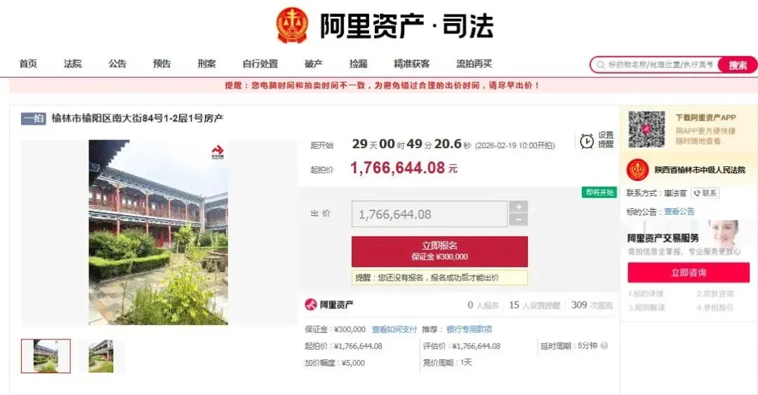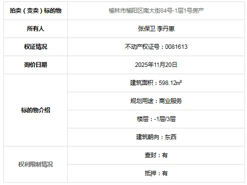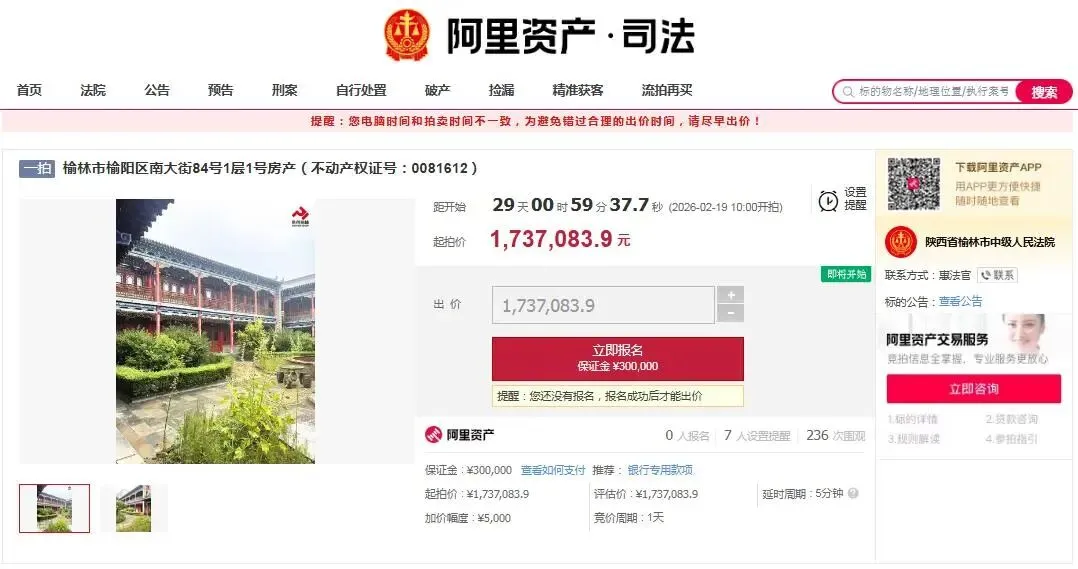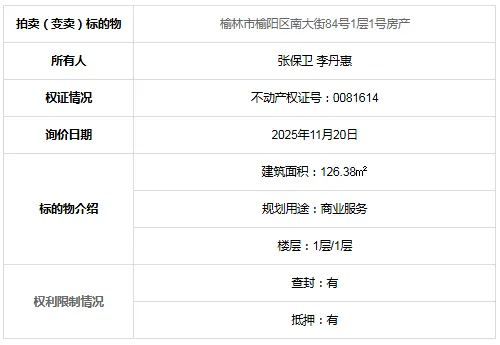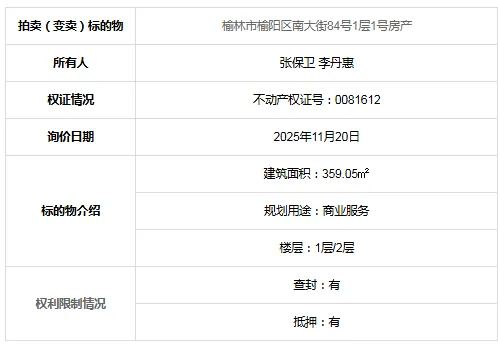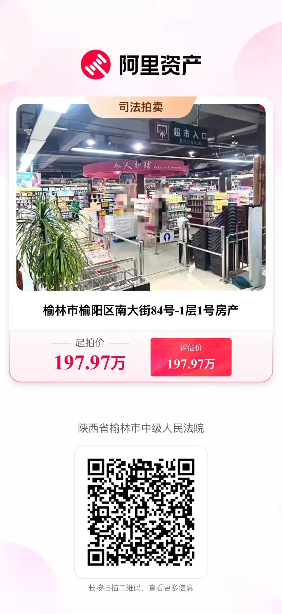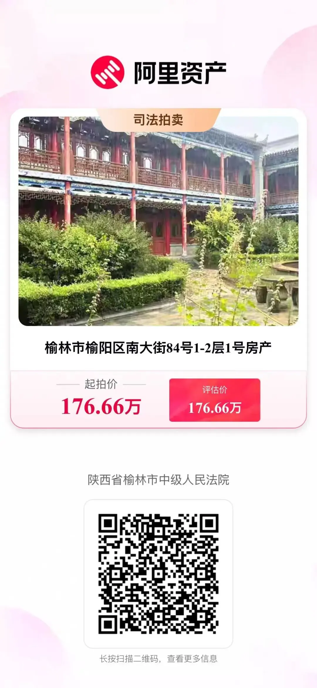 2月19日10时至20日10时,榆林中院将在淘宝网司法拍卖平台上,拍卖榆林市榆阳区南大街84号4处房产,下滑了解更多!