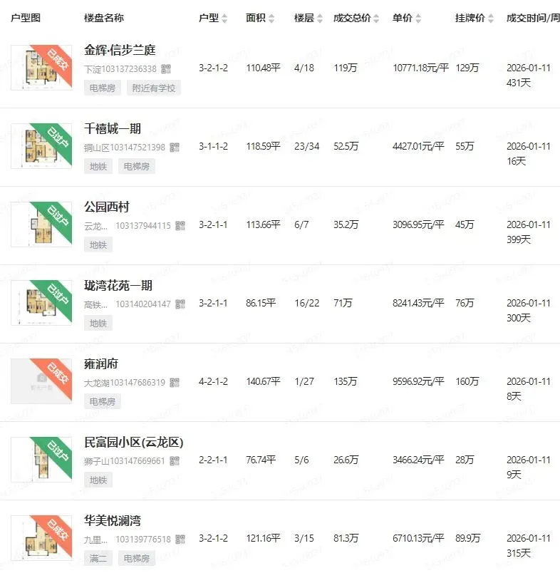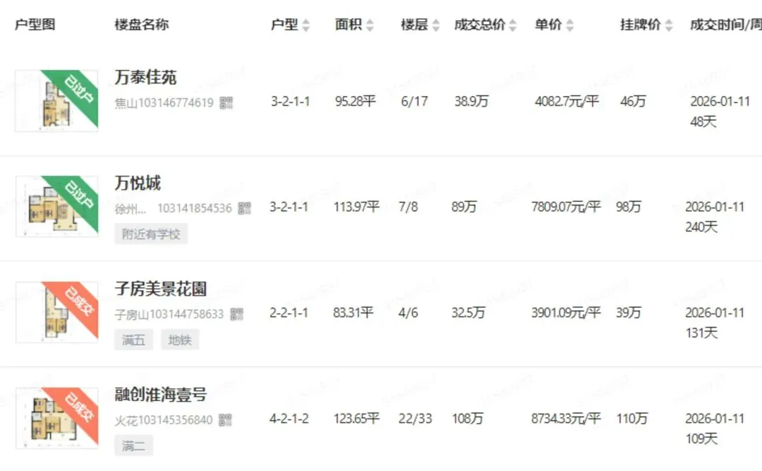 1.小编每日开始更新丨全徐州二手房真实的成交价。
