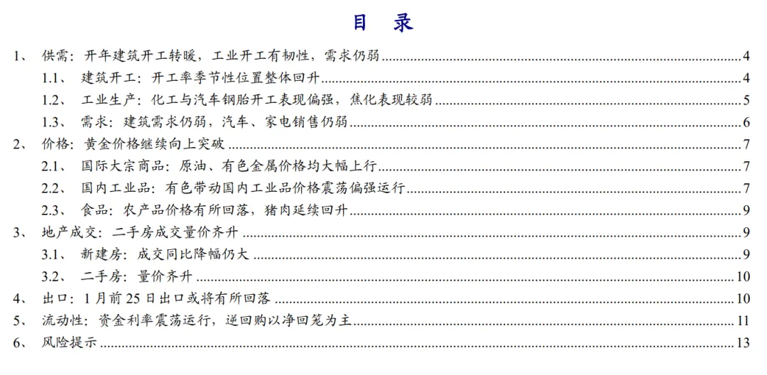 供需:开年建筑开工转暖,工业开工有韧性,需求仍弱