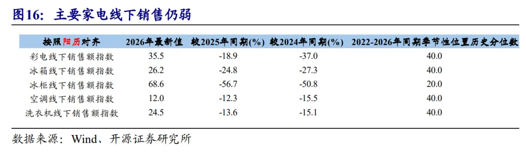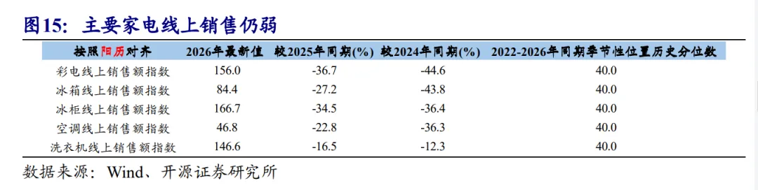 家电销售仍弱。主要家电线上、线下销售仍弱,均处于同期历史偏低位置。