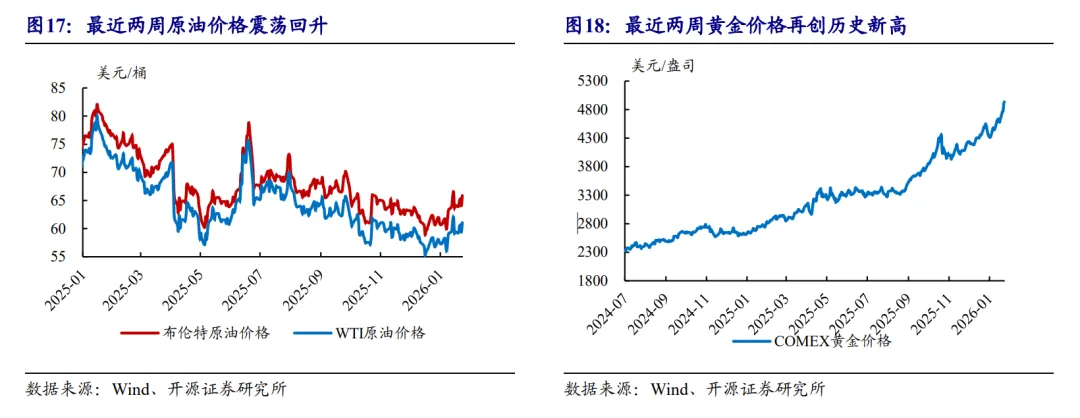 最近两周(1月10日至1月23日),原油、铜、铝、黄金价格震荡上行,铜、铝、黄金价格继续向上突破,再度创历史新高。我们提示,中长期从货币属性角度看,黄金价格仍有上行空间,短期或需控制回调风险。