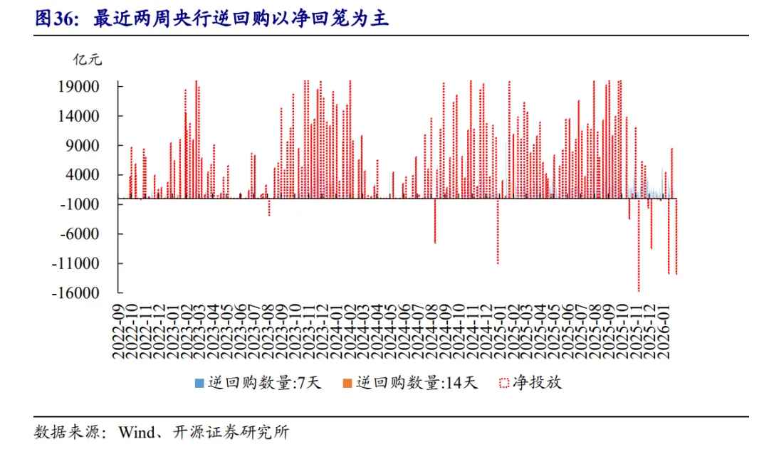最近两周(1月12日至1月25日),央行逆回购以净回笼为主。最近两周央行实现货币净回笼 4261 亿元。