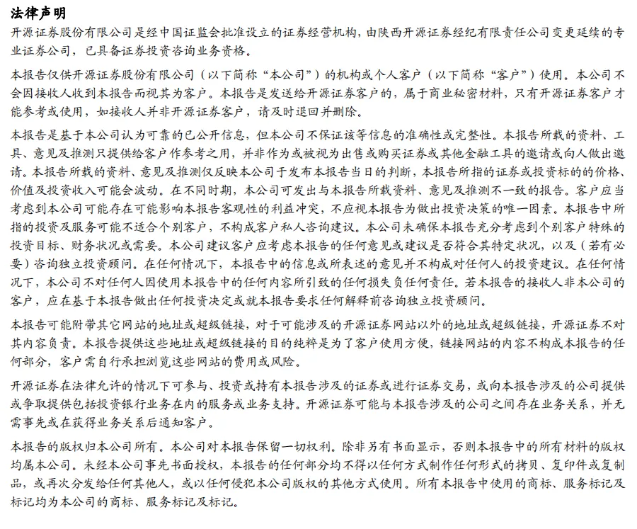 本报告仅供开源证券股份有限公司(以下简称“本公司”)的客户使用。本公司不会因接收人收到本报告而视其为客户。本报告是发送给开源证券客户的,属于商业秘密材料,只有开源证券客户才能参考或使用,如接收人并非开源证券客户,请及时退回并删除。