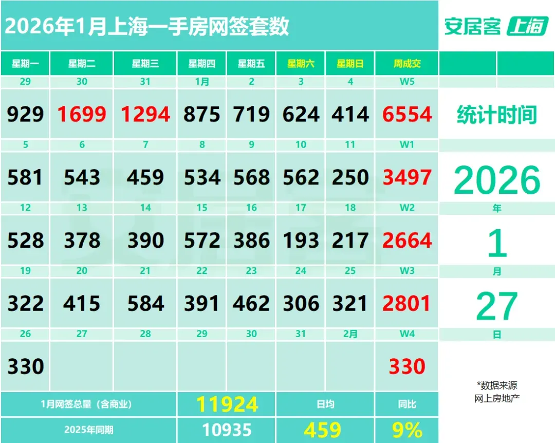 >新房330套,二手房671套!1月26日上海网签数据出炉!