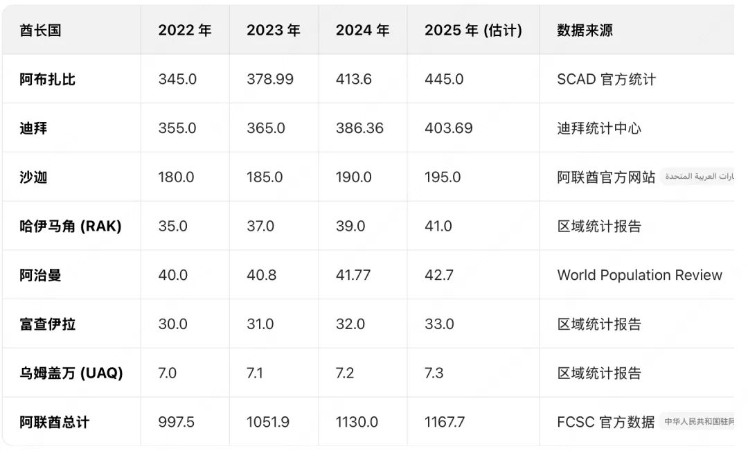> 本报告数据来源:中华人民共和国驻阿拉伯联合酋长国大使馆经济商务处、阿布扎比房地产中心(ADREC)报告、克而瑞《2025上半年阿联酋住宅市场趋势报告》(援引阿布扎比工商会、SCAD等数据)、驻迪拜总领事馆经济商务处编译信息。数据截至2025年第三季度。