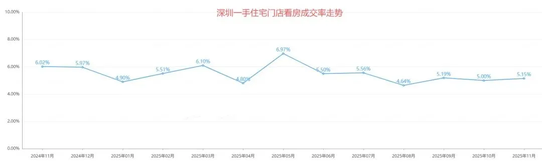 深圳新房看房成交率连续3个月维持在5%左右,11月小幅上涨,数据显示,11月深圳新房最新看房成交率为5.15%,连续3个月维持在5%左右,即100批客户看房可以成交5套左右。随着年底结婚等购房需求提升,看房成交率有望进一步提升。新建商品住宅成交量环比增长9.8