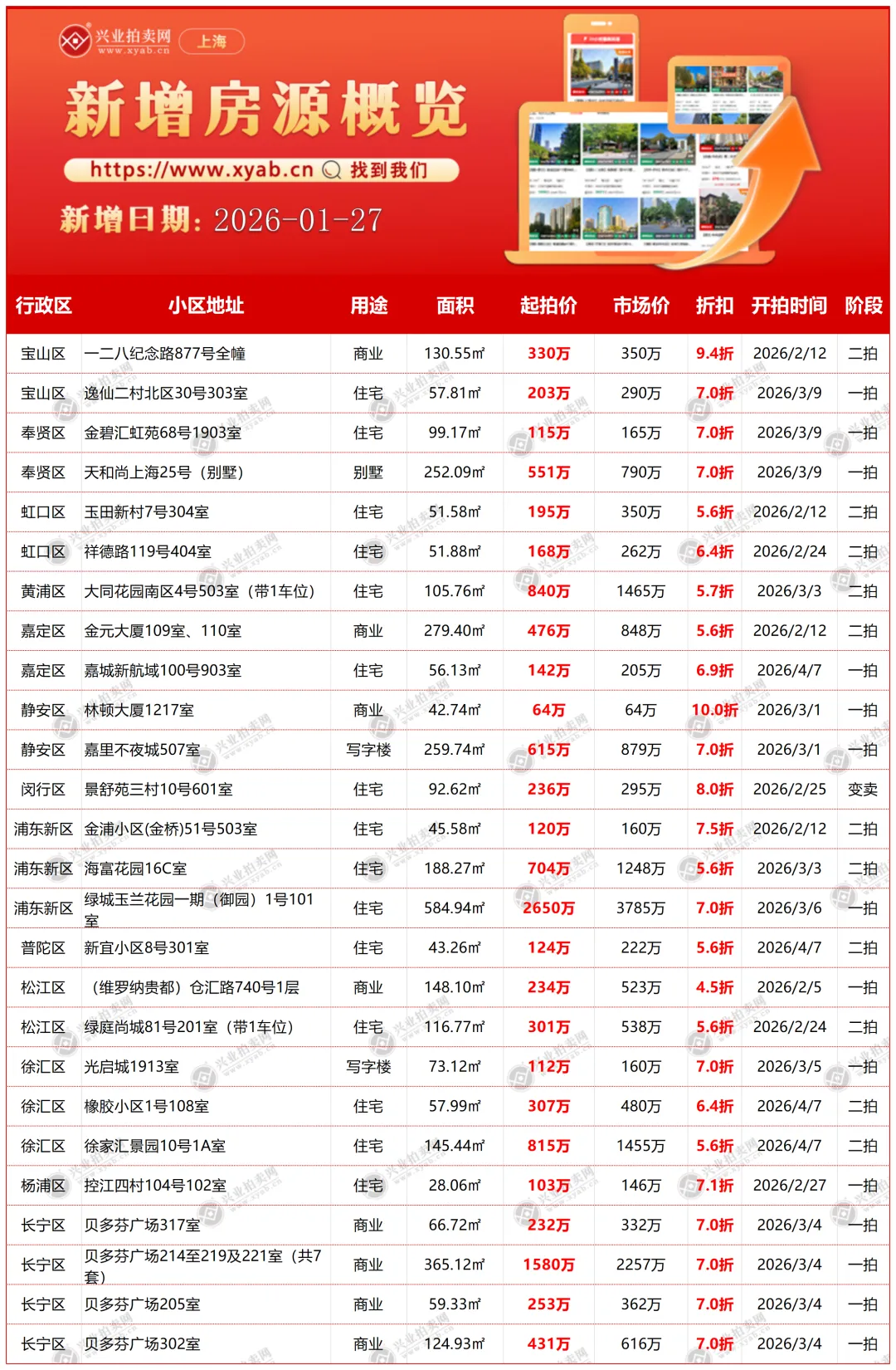 上海拍卖房产昨日新增详情
