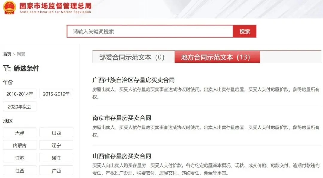 经查询住房和城乡建设部网站和国家市场监督管理总局网站,并无全国统一的《存量房买卖合同示范文本》。