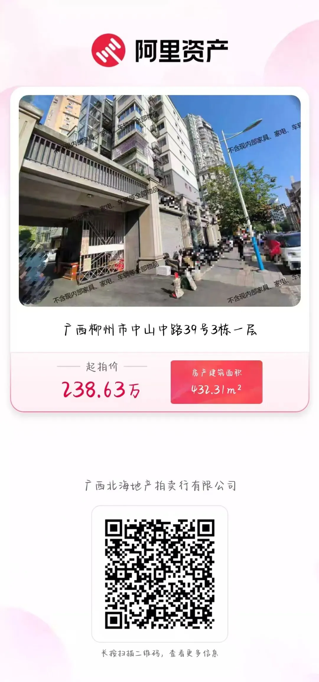 请有意者于2026年2月5日17:00前联系我公司,进入我公司拍卖信息化管理系统(https://a.dc625.com)—标的目录—搜索“银行自有房产(柳州分行)”—点击“详情”—点击“展示”“登记看货人信息”进行展示申请登记,按我公司安排的展示时间查看标的。