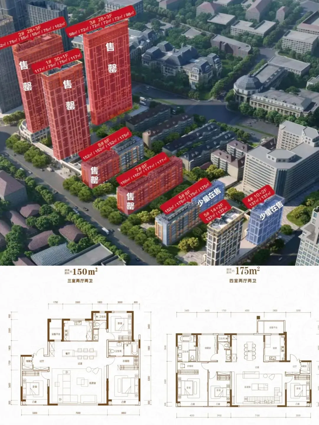 目前项目一期基本属于尾盘了,洋房有少量房源,小高有部分房源,高层基本售罄。洋房户型为150平和180平左右的三室和四室,小高是135平的三室,洋房是毛坯,高层和小高都是精装交房。一期预计交房时间是2026年年底,也就是今年就会交房了。