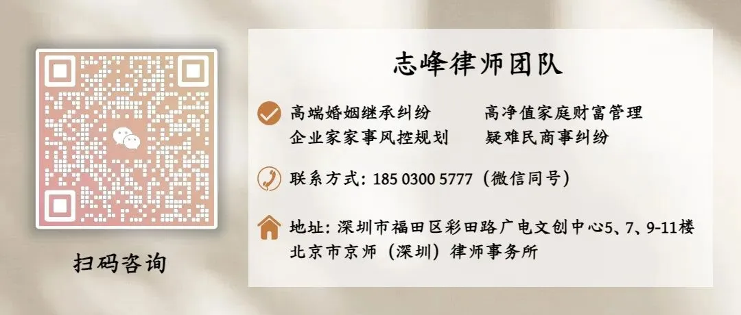 志峰律师团队深耕婚姻家事和财富传承领域,经验丰富。多年来成功办理多起复杂婚家类案件,在案件办理过程中调解成功率高达90%以上。团队成员人员构成多样,有执业25年的资深律师、有心理咨询师资格的律师、有调解员出身的律师、还有多年从事政府法律顾问服务经验的律师,多种类型的团队成员能够成熟应对和解决多种领域纠纷问题。