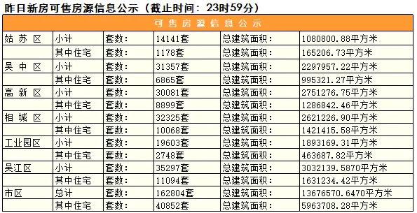 苏州1月27日住宅成交291套,新房住宅成交39套,二手房住宅成交252套,新房住宅新增0套,新房住宅可售40852套。