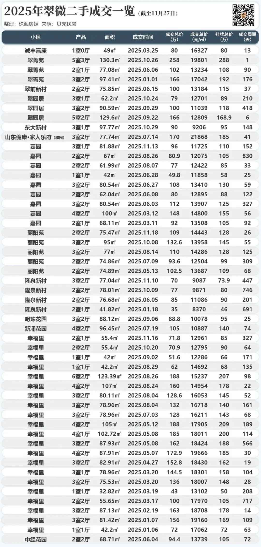 注:成交数据来源贝壳找房;由于成交有滞后性,房源成交截至11月27日。数据较多,如有错漏,烦请指正!