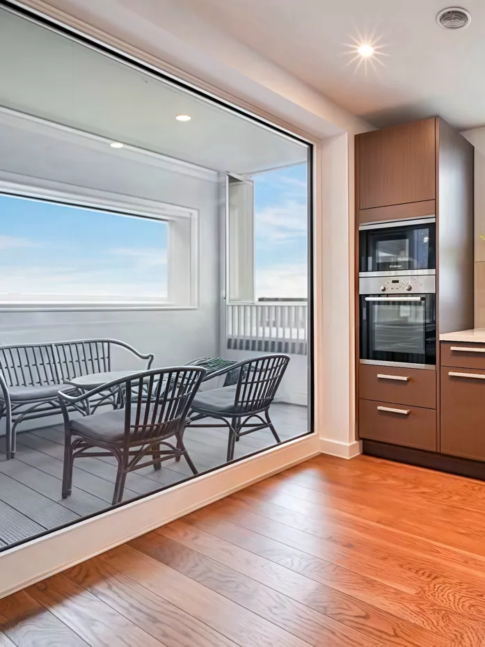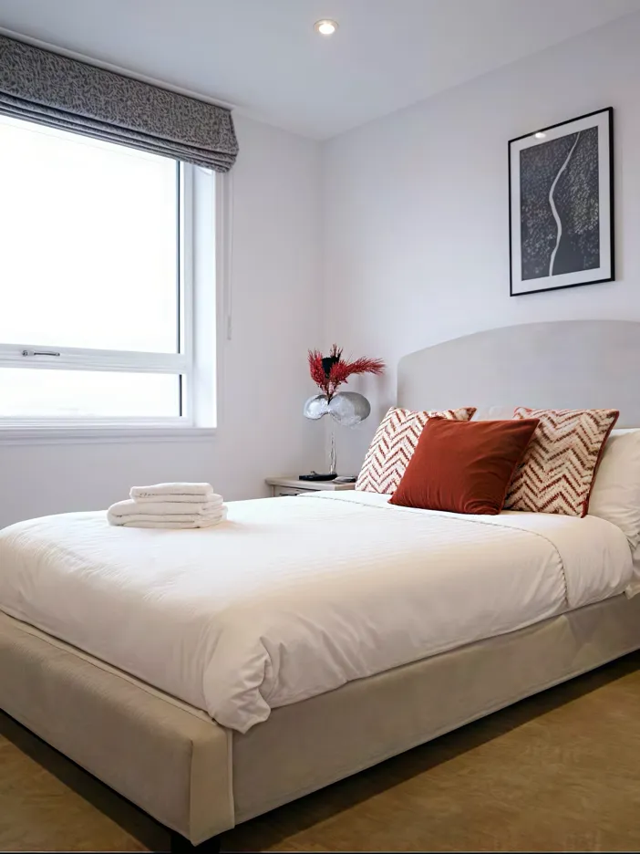 主卧带 ensuite;客厅与卧室均为落地窗采光好;装修为高标准卫浴与经典瓷砖装饰。