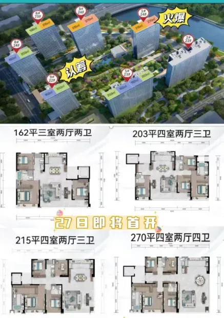 科技城尊御府,个人感觉,这是奥体铂悦府的升级加强版,六栋楼排布靠边,中央大绿地,中心景观,豪华大门下沉会所,外立面干挂铝板,幕墙窗,双银LOW-E超白玻,装修标准也非常高,说实话没太记住,就找一个ppt截图了。位置来讲,这个位置在科技城算是很不错了,河景公园,地铁口,商场距离都不远,毗邻CBD,两个地铁口距离都比较适中。项目目前在售产品有162,203,215,270四个户型,项目施工速度也非常快,虾米真的是看着项目起来的。。。此时还得感叹一句,奥体铂悦府真的是生不逢时,户型有点太超前了,假设2024年出现156的三室,相对好卖很多,当年正在二胎潮高峰,大家普遍要求四室,今年明显感觉对大三室的咨询提高了很多,追求居住舒适,大客厅,每个房间也要大。。。。。。