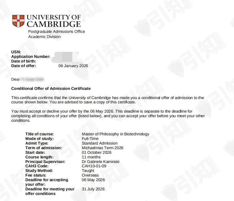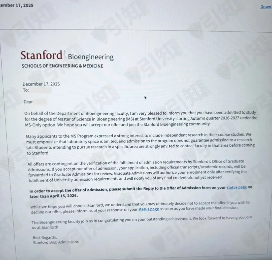 生物科技研究型硕士项目录取!