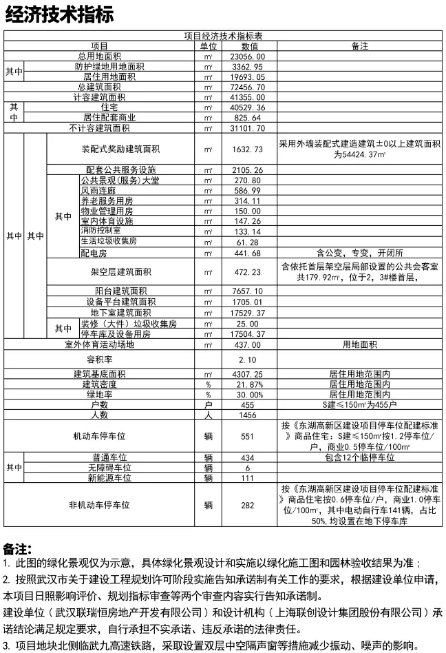 项目位于东湖新技术开发区武九铁路以南、关南园一路以东,总用地面积23056㎡,总建筑面积72456.7㎡,总户数为455户。