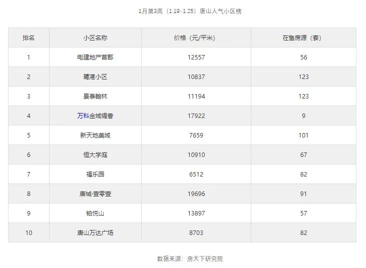 新一期唐山人气小区TOP排名出炉!
