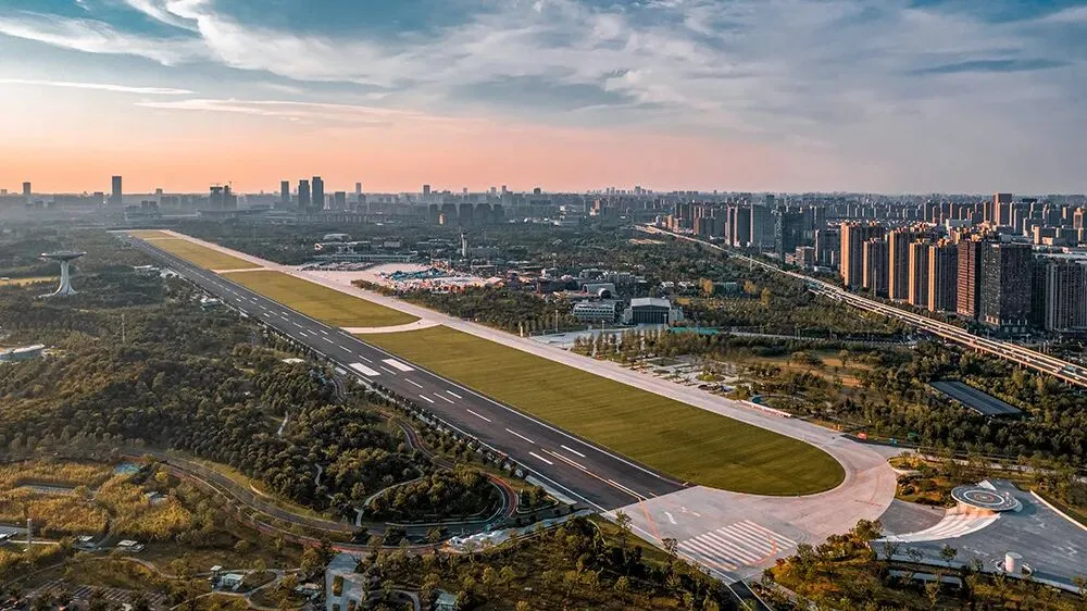切口一:海绵城市。面对原机场31%的硬化地面,合肥没有一拆了之,而是保留主跑道,用「生态透水层+下沉式设计」改造成「梦想大草坪」——全国最大的单体下沉式绿地。