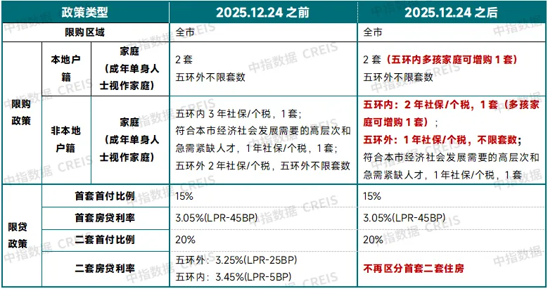 表:北京2025.12.24限购、限贷政策调整前后对比