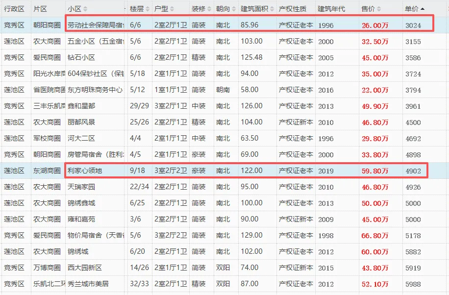 :红框房源的价格优势,反映出核心地段老旧小区和次新社区的性价比差异