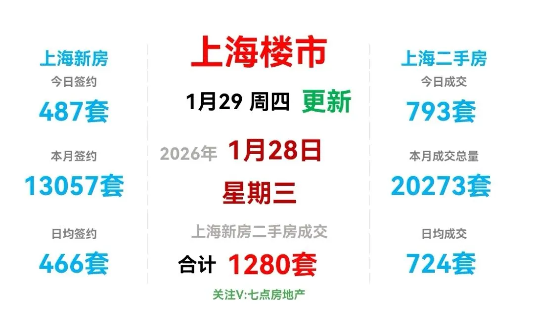 昨日(1月28日,周三),上海新房和上海二手房成交量合计1280套。