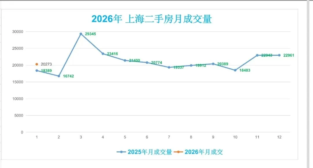 ♻️截止2026年1月28日,2025年上海二手房成交量合计254091套,月均21174套。
