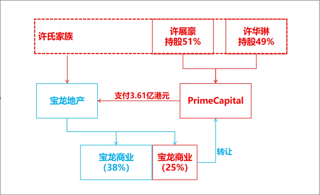叠加买方关联方持有的25%股份,许氏家族对宝龙商业的实际控制权未发生根本变化,且公告明确“出售后两家公司最终控股股东保持不变”;