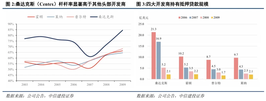 美国房企发展模式偏专业型,低杠杆和去库存是穿越周期的关键。与我国类似,以桑达克斯(Centex)为代表的美国高杠杆房企在下行阶段率先出清,杠杆率较低的霍顿(D.R. Horton)等房企在危机时期以去库存、降负债、缩减业务规模为重点任务,待美国房地产市场回暖后通过期权形式增加土储。在商业赛道,西蒙地产(SPG)凭借商业地产稳健的现金流和自身的运营优势平稳度过危机,次贷危机后通过发力奥特莱斯业态、动态调整物业组合、多元化布局以实现长期稳定发展。日本房企多为综合型发展模式,泡沫破裂后经营性业务占比提升。90年代日本泡沫破裂后,三井不动产等财团系房企凭借业务多元化布局以及财团支持穿越周期。日本房企在90年代后经历三个阶段,从初期的惯性增加借款及开发投入,到中期去库存、降负债,后寻求向经营性业务转型发展。21世纪以来,由于新房需求中枢下移,日本头部房企发展模式由增量逻辑转向存量逻辑,其转型发展呈现几个特点,包括收入向经营性业务倾斜、开拓资管和国际业务、优化杠杆率和负债结构、国内业务聚焦东京都市圈。我国房企未来高质量发展需具备三要素。结合海外经验和我国实际背景,我国房企高质量发展需要具备的要素包括在核心赛道具备竞争力、开发销售的规模与企业杠杆率适中、品牌IP具备辨识度。最重要的核心赛道是商业地产和核心城市开发这两大领域,房企当前逐渐向持有物业转型,商业地产尤其是购物中心业态是房企侧重的业务板块;而核心城市当前的住房表现为总量基本平衡、结构性供给不足,核心城市开发赛道仍然是头部房企布局的重点。规模与杠杆适中是适应我国房地产供需关系转变后的可持续发展条件。以产品力和运营优势支撑的品牌效应也是存量时代成熟市场中重要的差异化竞争优势。我们看好在核心赛道具备竞争力、杠杆率和规模适中、具备品牌效应的房企。房地产行业的风险主要在于销售、结转及房企信用修复可能不及预期:1、销售不及预期:地产市场销售目前仍处筑底阶段,未来有继续下行或恢复不及预期的风险;2、结转不及预期:销售疲弱导致房企销售回款较差,资金来源较紧张,项目的施工进度可能受到影响,或导致结转不及预期;3、房企信用修复不及预期:部分高杠杆的房企出险可能性仍存,导致行业整体信用修复进度缓慢,影响房企公开市场债务的融资规模与融资成本,进而导致行业竣工及现金流压力加剧。相关报告: