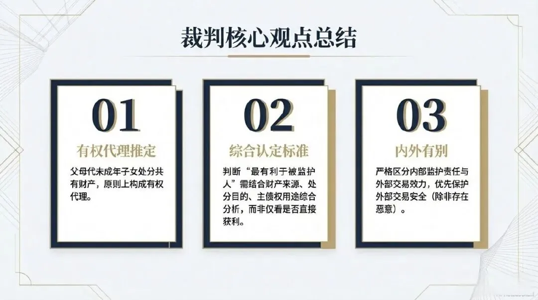 未成年人财产形式日益丰富,父母代子女处分共有财产的纠纷频发。法院究竟如何判断此类行为的法律效力?交易相对方需尽到何种审查义务?家庭利益与市场秩序之间该如何找到平衡点?这起典型案例的裁判逻辑,或许能给我们答案。
