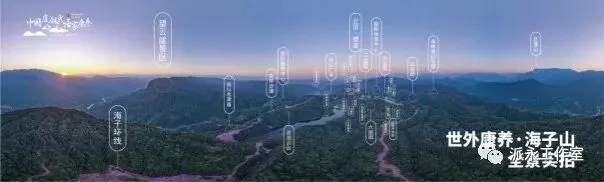 世外乡村·海子山国际生态康养旅游基地(以下简称海子山),幅员面积73平方公里,预计总投资300亿元,建设面积350万㎡,规划入住康养之家37000户,2020年6月获国家林业和草原局、民政部、国家卫健委、国家中医药局联合评为第一批“国家森林康养基地”。