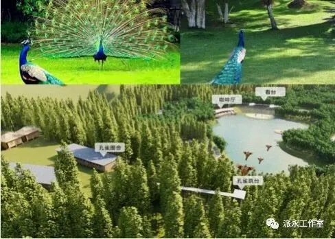 森林奇幻乐园 :为满足全年龄段人群的度假需求,基地内将会按照国家4A级景区的高标准打造一一个全国首个高山森林孔雀园,川西萌宠亲子游乐目的地。300亩的孔雀乐园共设包括萌宠部落、动物幼儿园、梅花鹿园、孔雀剧场、百鸟园、矮马庄园、精灵乐园、儿童游乐七大主题游览区。孔雀剧场以孔雀公主与傣族王子的爱情故事为主线,以森林剧场为核心,讲述孔雀公主与傣族王子的傣族文化。