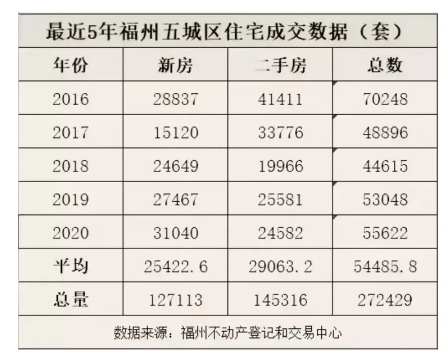 2021年福州市五城区新建商品房销售8.38万套、634.78万平方米,其中住宅5.46万套、518万平方米:二手房交易3.94万套、300.99万平方米,其中住宅3.03万套、280.11万平方米。