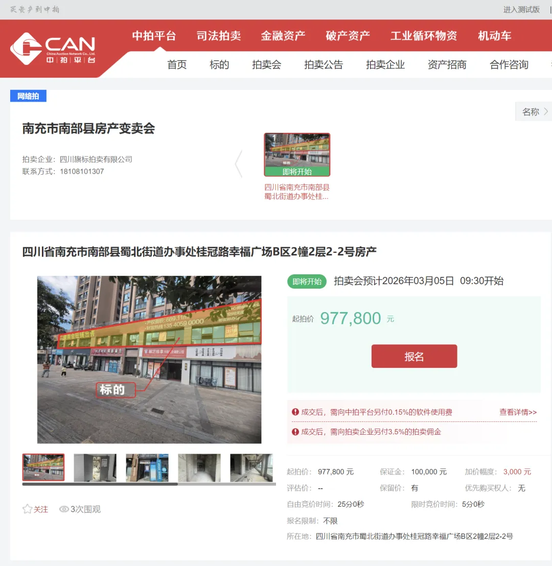 标的自2026年1月21日起至2026年3月4日止在其所在地公开展示。与标的变卖有关事项的咨询,请详询本公司。