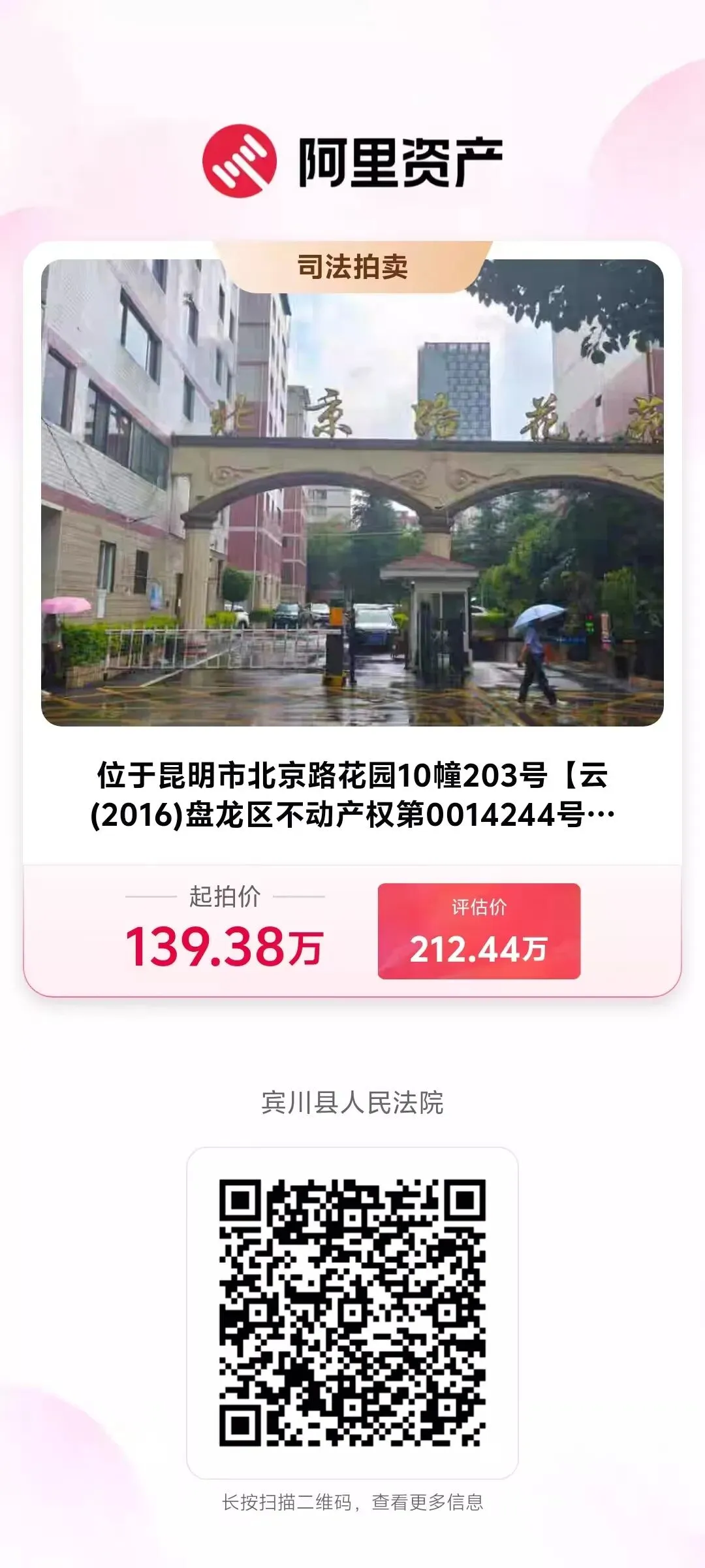 关于位于昆明市北京路花园10幢203号【云(2016)盘龙区不动产权第0014244号】房产的变卖公告
