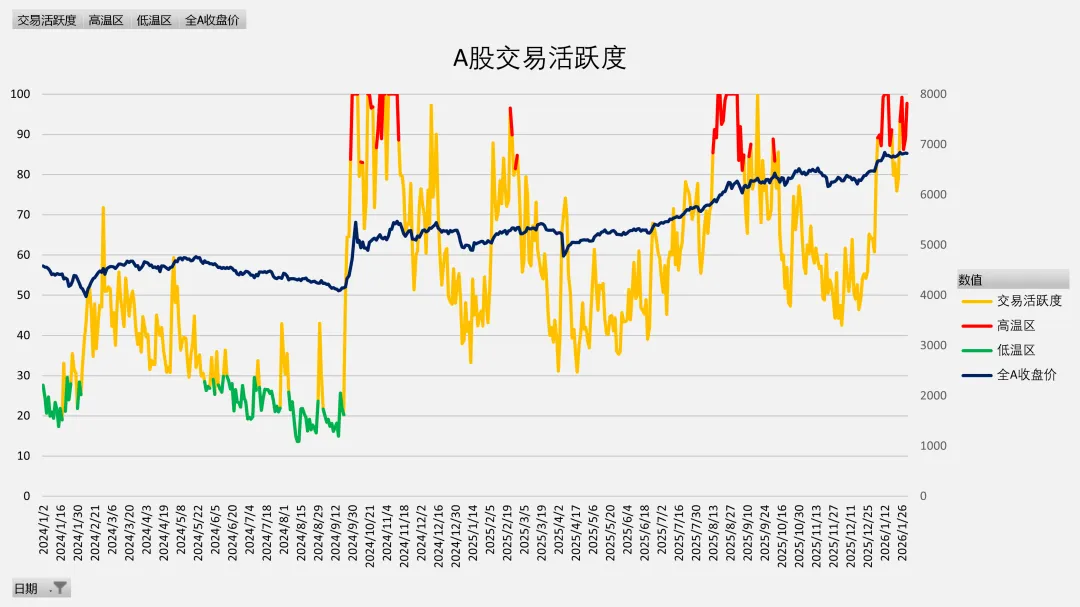 指标说明:偏股与债券基金净值比值,红色是高估区,比值大于90%
