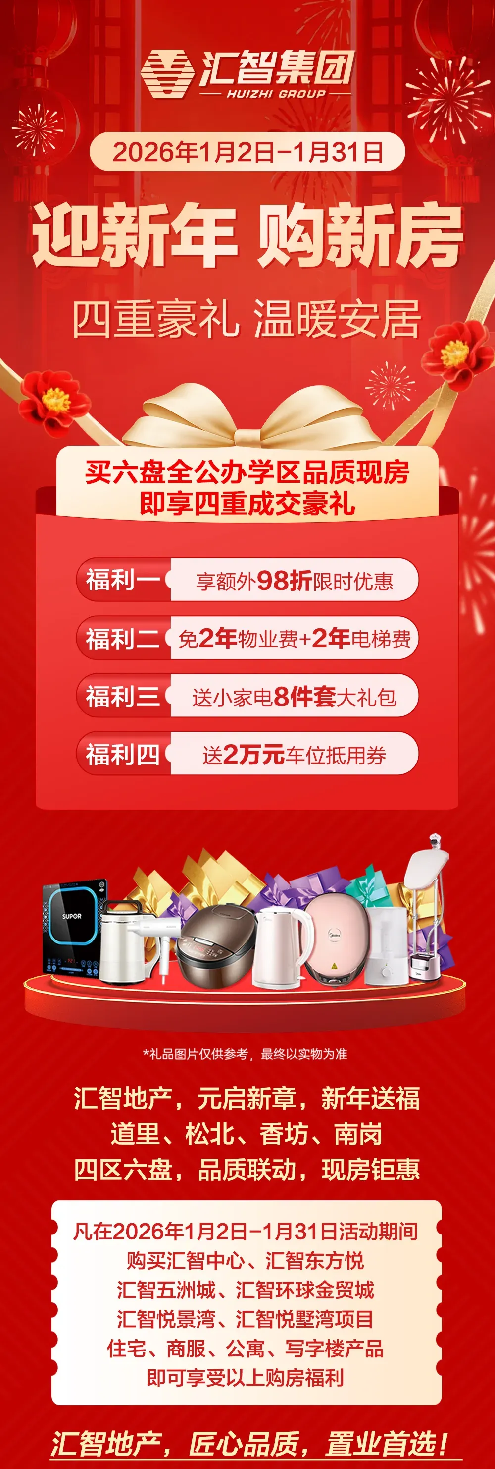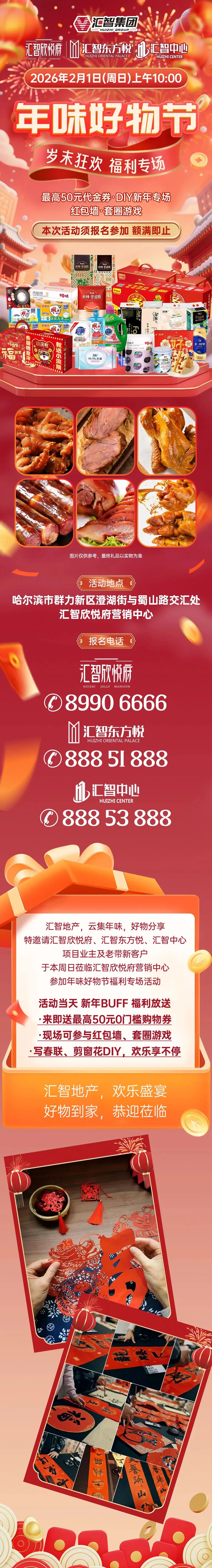 >汇智地产|年味好物节2月1日(周日)福利放送!来即送最高50元0门槛代金券!超多好物,BUFF叠满!