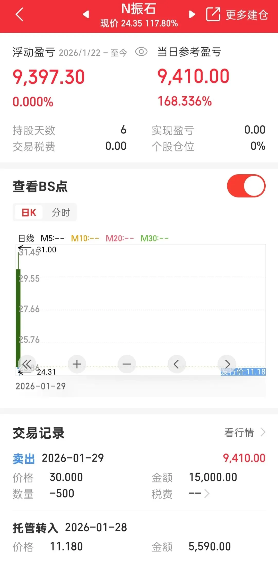 还好开盘跑了,中的新股,赚了9000多。
