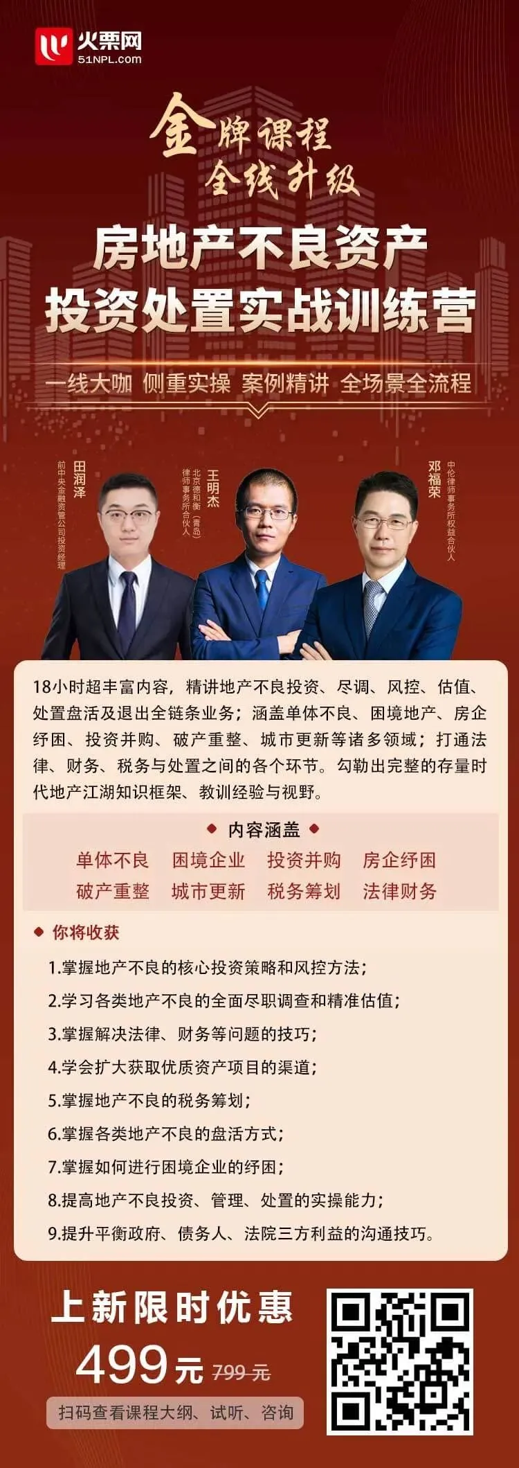 火栗网销冠课程《房地产不良资产投、管、退全解》在市场环境变幻与处置手段日渐丰富的背景下全面更新升级为《房地产不良资产投资处置实战训练营 》第一部分:地产不良资产投资与尽调