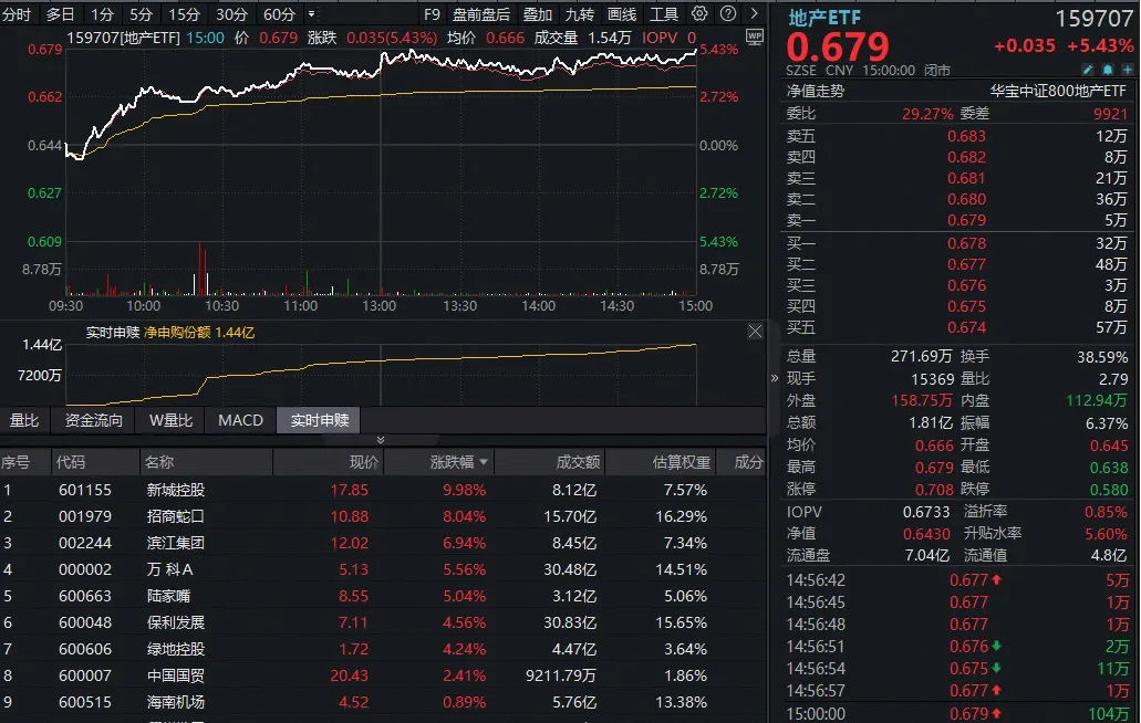 “十年一遇大拐点”?龙头地产集体爆发,全市场唯一地产ETF(159707)暴涨超5%,资金加仓1.44亿份!